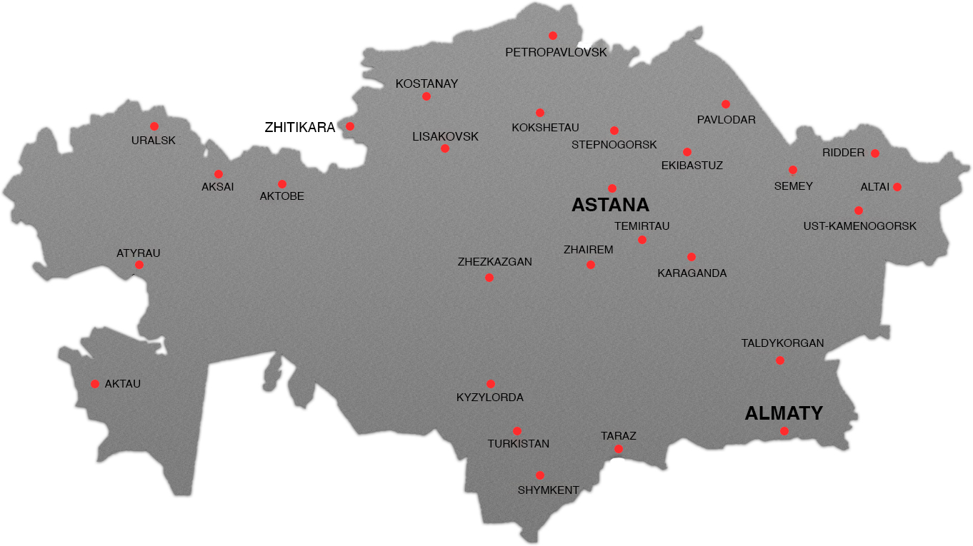 We are represented in 28 cities across Kazakhstan, which allows us to respond quickly to customer requests and provide high-quality security services in any region.